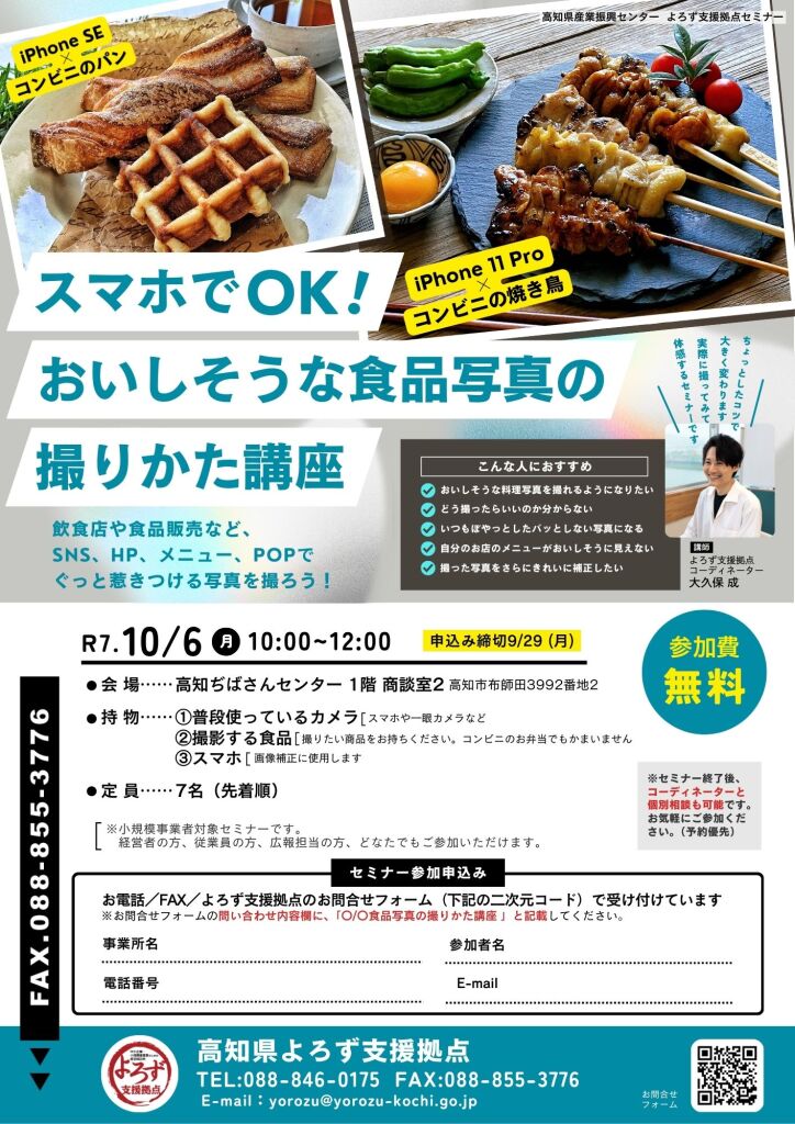 令和7年10月6日(月) スマホでOK!おいしそうな食品写真の撮りかた講座