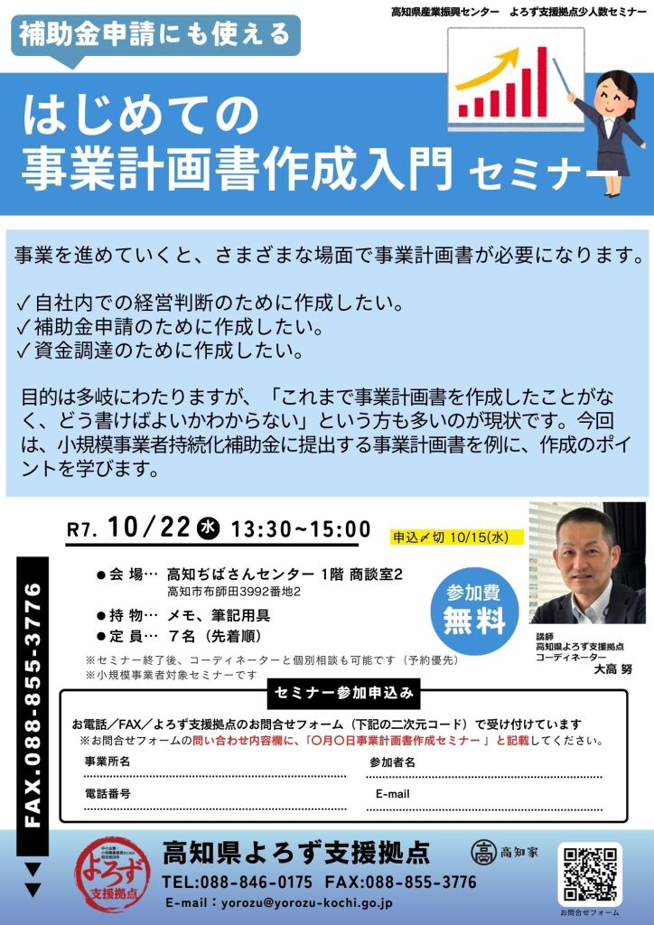 令和7年10月22日(水) 補助金申請にも使える はじめての事業計画書作成入門セミナー