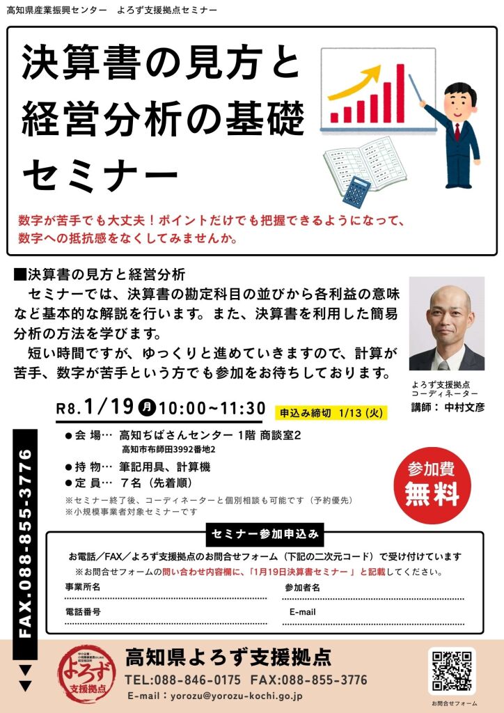 令和8年1月19日(月) 決算書の見方と経営分析の基礎セミナー