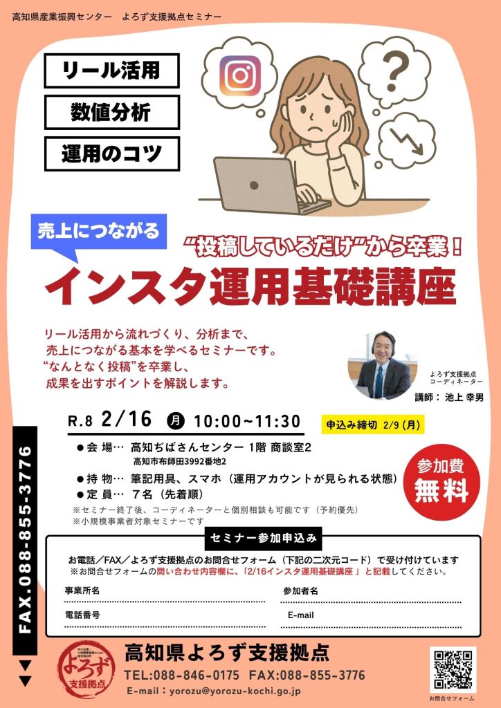 令和8年2月16日(月) ‟投稿しているだけ”から卒業!売上につながるインスタ運用基礎講座