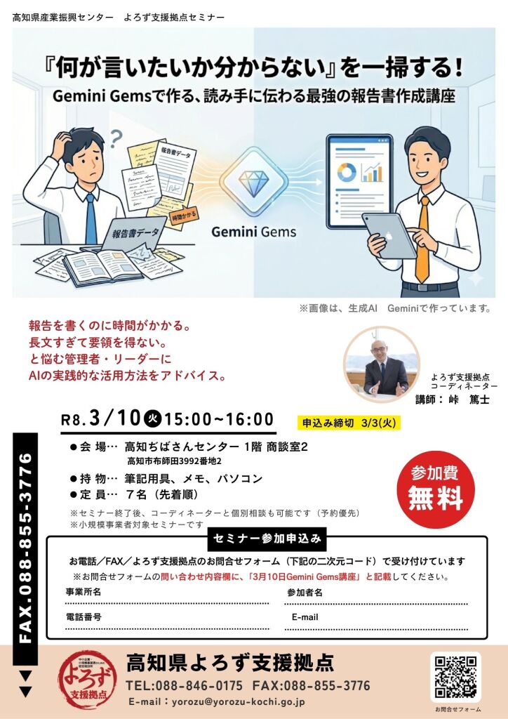 令和8年3月10日(火) 『何が言いたいか分からない』を一掃する! Gemini Gemsで作る、読み手に伝わる最強の報告書作成講座